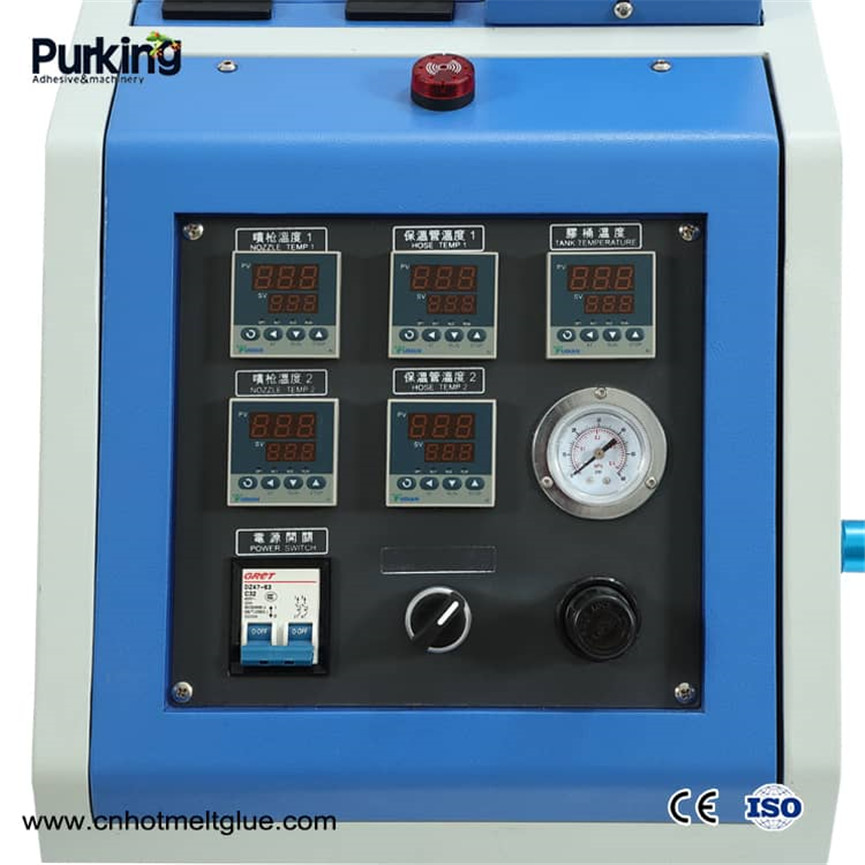 Vår smeltelimsmelter 5 liter vedtar importert stempelpumpeteknologi med rask responshastighet og følsomhet. Det kan smelte lim 5 liter i timen, noe som effektivt kan sikre stabiliteten til limutgangen til luftpumpen opp og ned. Smeltelimsmelteren 5Liter produsert av selskapet i mange år selges godt i ASEAN og EU.